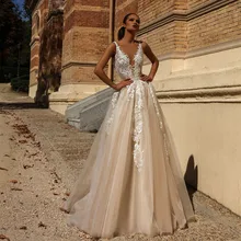 KapokDressy 2021 New Arrival A-Line Wedding Dresses Illusion O Neck Sexy Backless Appliqued Beading Floor Length Bridal Gowns