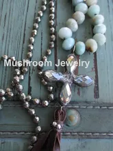 Knot Boh Pyrite Gemstone Beads And Amazonite Cross Pendant Jewelry Charm Necklace For Women leather Tassel